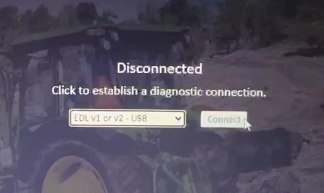 Attach the john deere edl v3 tool to the vehicle via the OBD cable.