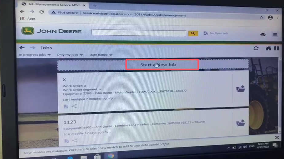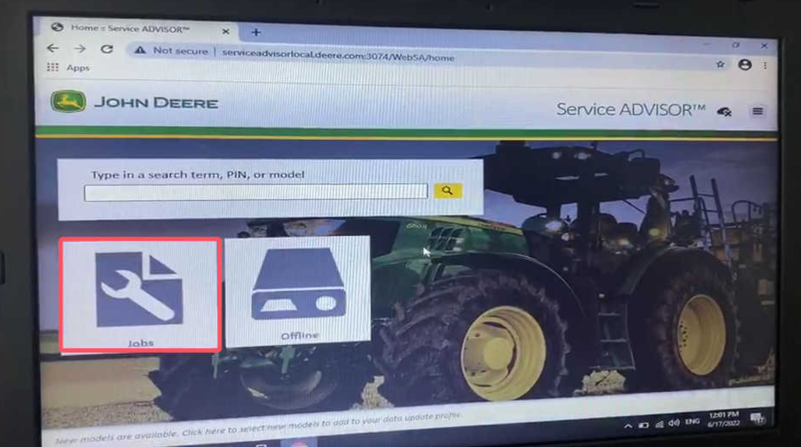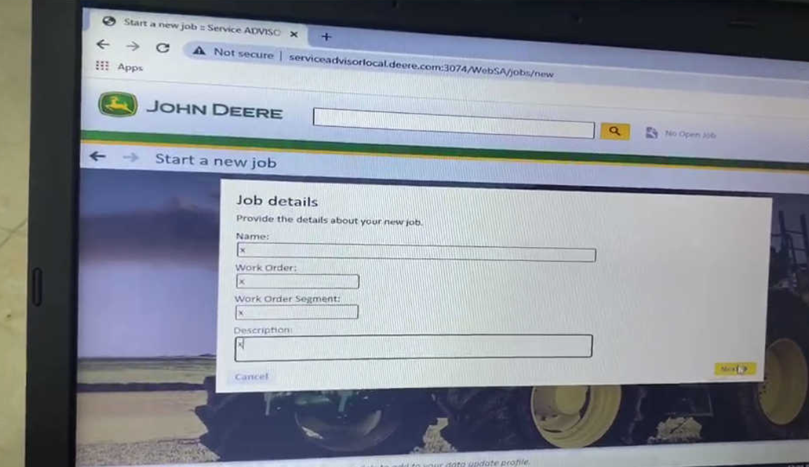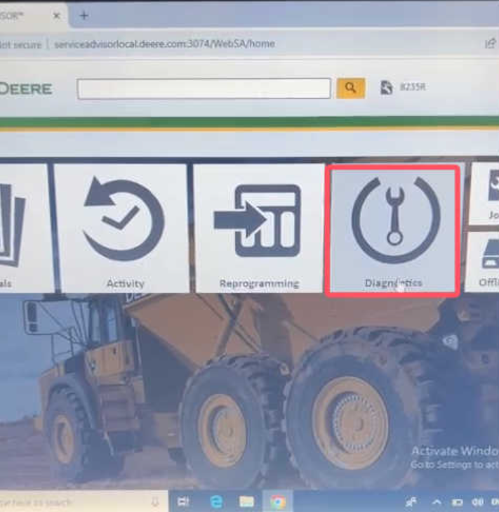 Launch the John Deere Service Advisor software on your laptop.