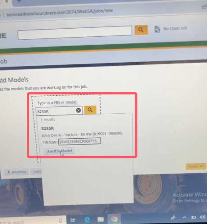 Input your tractor's model into the software.
