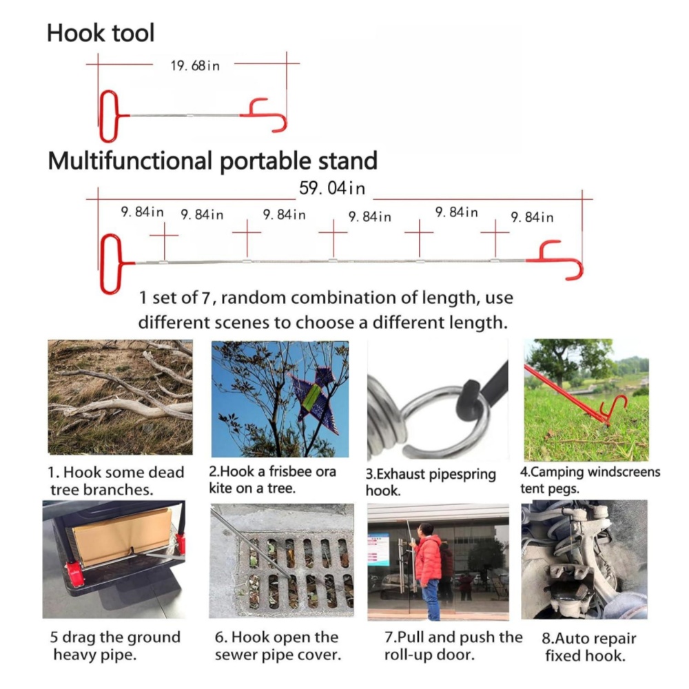 2. Expandable Tool: Made of solid 304 stainless steel, this professional long reach tool comes in four parts that assemble into a maximum length of 67 inches. It features a non-slip soft rubber handle and a hook protector to prevent scratching the car's paint. The standard slot machined by CNC lathe matches perfectly with socket size, making it more convenient to disassemble the rod with a wrench.