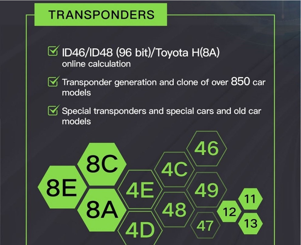 Support TP transponder & parts of special transponder more than 700 vehicle models, reduce the stock of transponders efficiently.
