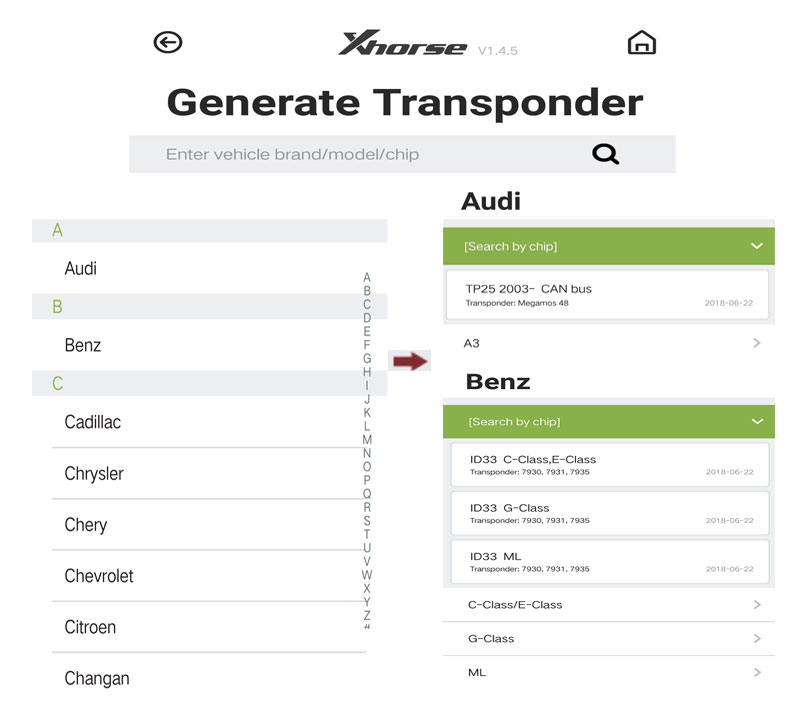 Support 128 brands, over 2000 vehicle models. Generate more abundant and thorough key pictures, transponder types, key blanks and remote matching data.